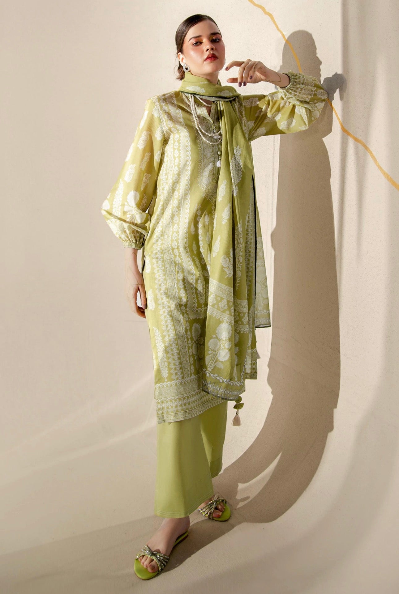 Sahar-Elegant Olive Green 3 Piece Embroidered Suit
